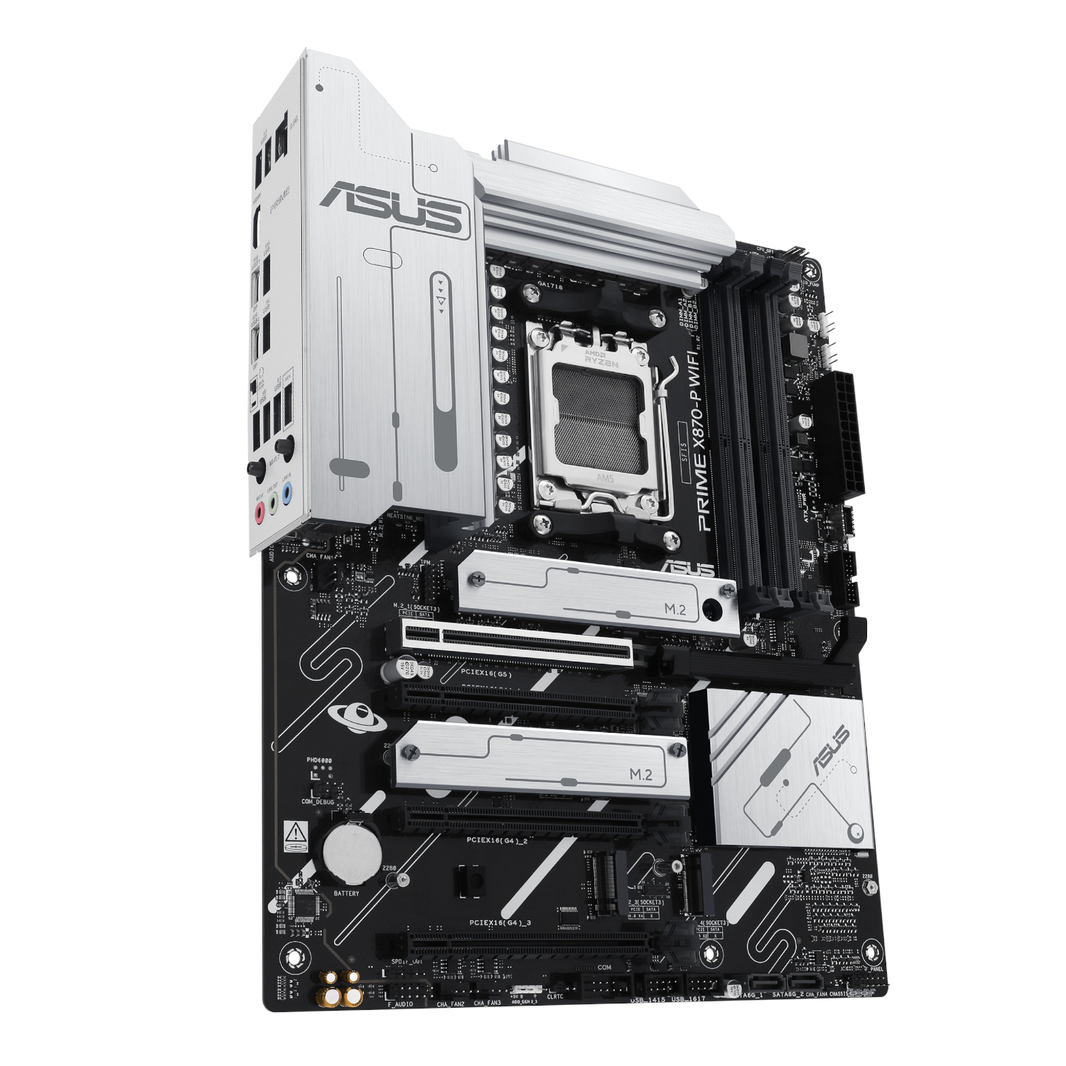Designed with DDR5 performance in focus, the PRIME X870-P WIFI supports memory speeds up to 8000+ MT/s (OC) with AMD EXPO™ and ASUS Enhanced Memory Profile (AEMP) compatibility. Whether you’re running high-end gaming rigs or productivity-focused workstations, memory tuning is effortless thanks to a wide array of UEFI BIOS tools. Four onboard M.2 slots futureproof your storage setup—one PCIe 5.0 slot offering speeds up to 128Gbps, two PCIe 4.0 slots up to 64Gbps, and one PCIe 3.0 slot for additional expansion flexibility—ensuring fast system boot times and snappy application performance.